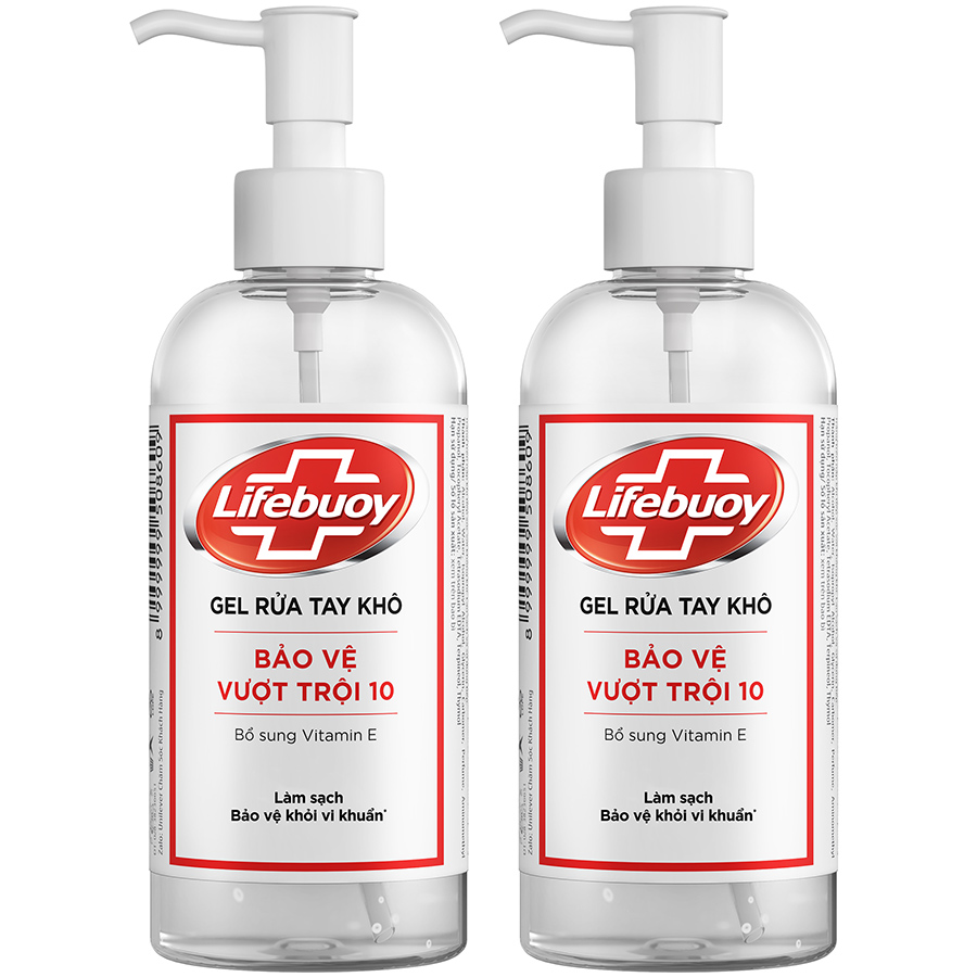 - Gel Rửa Tay Khô Sạch Siêu Nhanh Lifebuoy Bảo Vệ Vượt Trội 10 với công thức vượt trôi, bảo vệ khỏi 99.9% vi khuẩn gây bệnh, thích hợp sử dụng trong các trường hợp không có xà phòng hoặc nước.