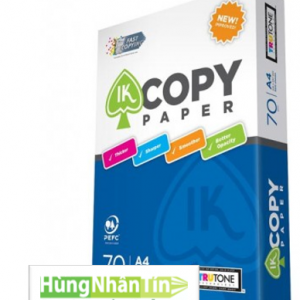 Đặc điểm: Giấy IK Copy A4 - 70gsm là loại giấy in có độ trắng cao, mặt giấy láng mịn, in hai mặt mà không bị nhăn và lem mực, độ nét cao, khổ giấy chuẩn tuyệt đối chính xác, in 2 mặt không bị kẹt giấy. Giấy Ik Copy được sản xuất bởi công ty giấy APP - nhà sản xuất giấy hàng đầu thế giới của Indonesia, đồng nhà sản xuất IK Plus. Khách hàng có thể hoàn toàn yên tâm về chất lượng và giá cả khi sử dụng. Thích hợp với tất cả các loại máy in phun, máy in laser, máy fax laser, máy photocopy.
