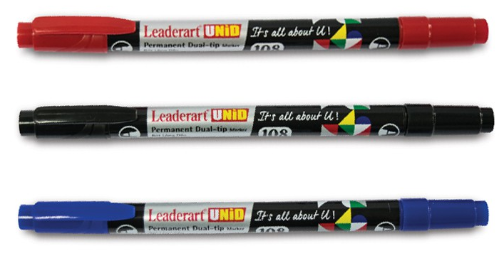 - Bút dạ kính Leaderart hai đầu cỡ nhỏ LA108 được sản xuất bằng công nghệ tiên tiến trên dây chuyền hiện đại. Bút có mùi thơm nhẹ, không chứa xylene và các chất độc hại, an toàn khi sử dụng. Mực bút viết rõ nét, khô nhanh, ngòi dạ và ngòi kim loại rất bền.